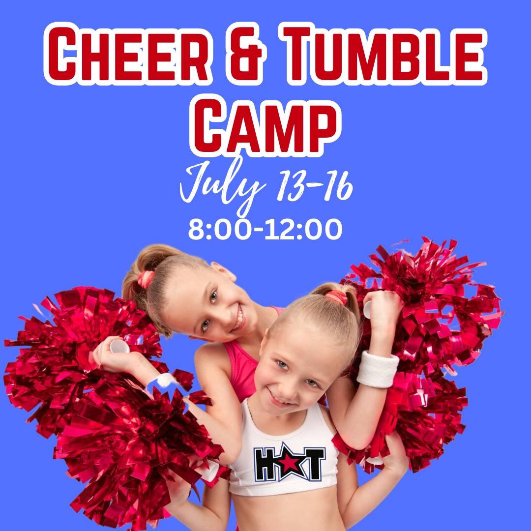 Tie Dye & Tumble Camp June 24–25 | 8:00 AM – 12:00 PM Get ready for color, creativity, and high-energy fun! Athletes will design their own tie-dye creations while rotating through tumbling stations focused on basics, coordination, and skill-building. A perfect mix of messy fun and active movement!
